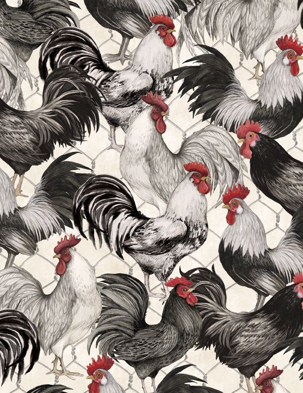 Proud Rooster Packed Roosters in Ivory by Susan Winget for Wilmington Prints 44 inches wide 100% Cotton Quilting Fabric WP-3023-39765-139