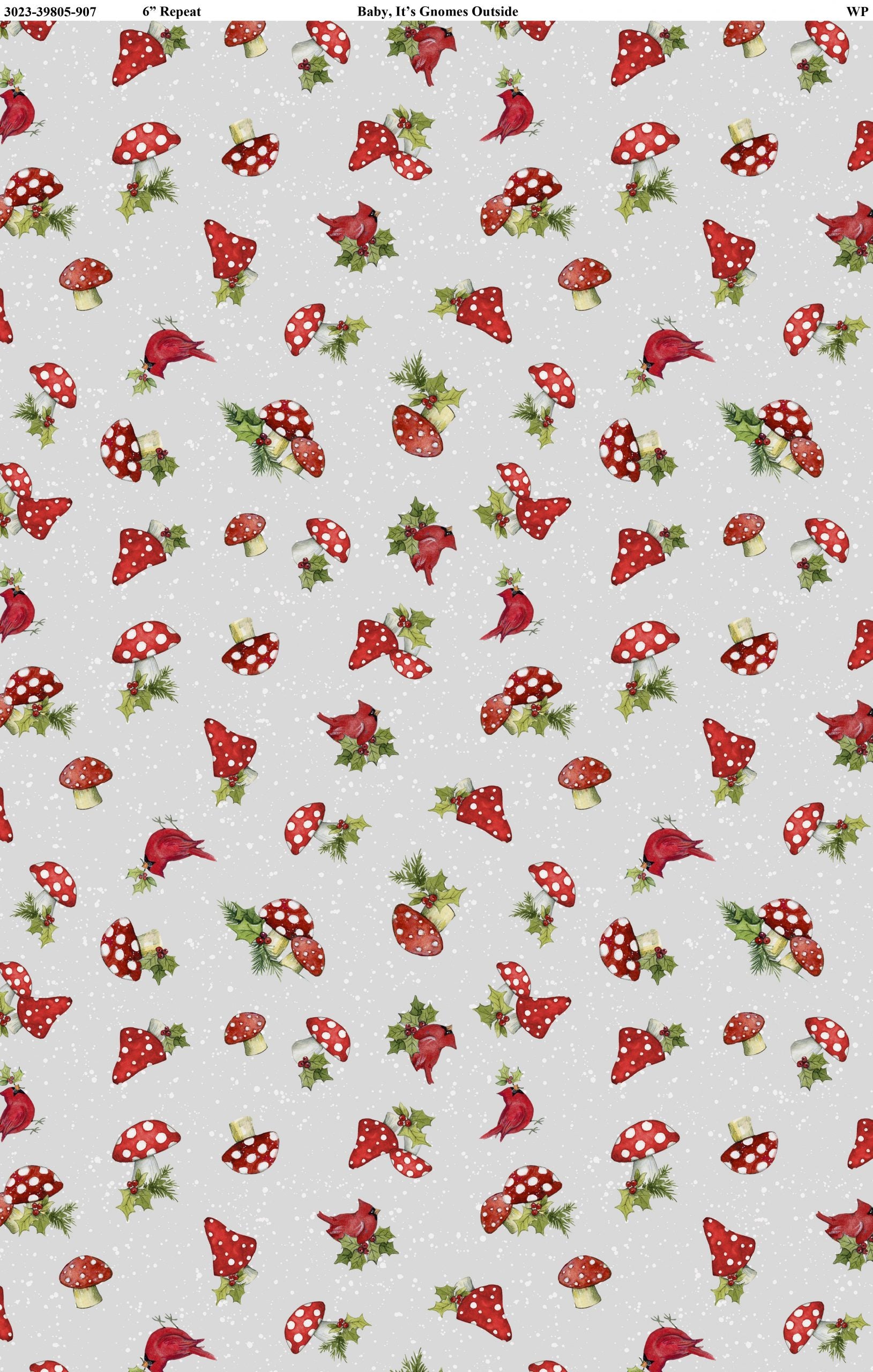 Baby It's Gnomes Outside Mushroom Toss Gray Susan Winget Wilmington Prints Cotton Fabric
