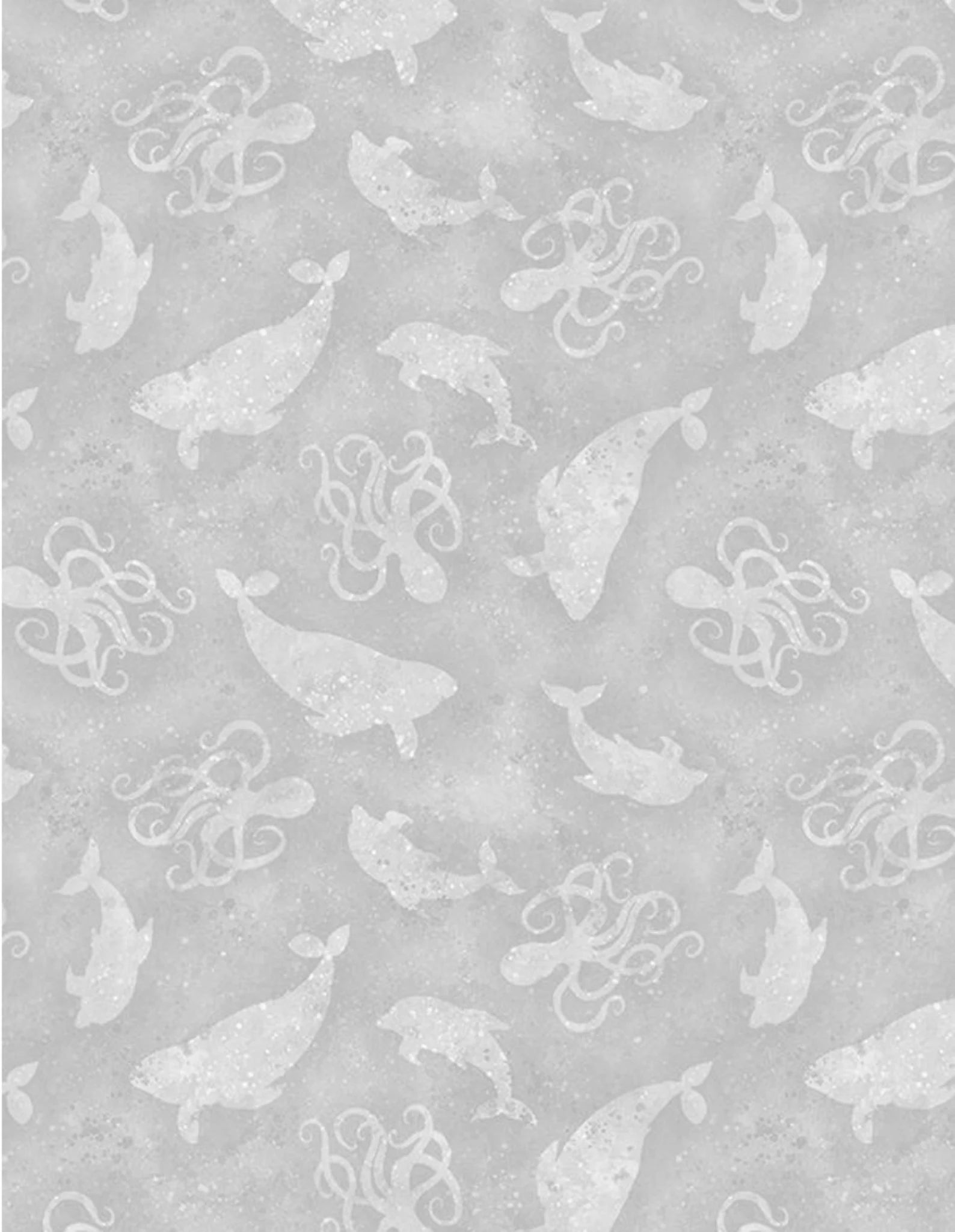 Paradise Bay Sea Creatures Silhouettes in Gray by Lola Molina for Wilmington Prints Fabrics WP-3051-40759-990