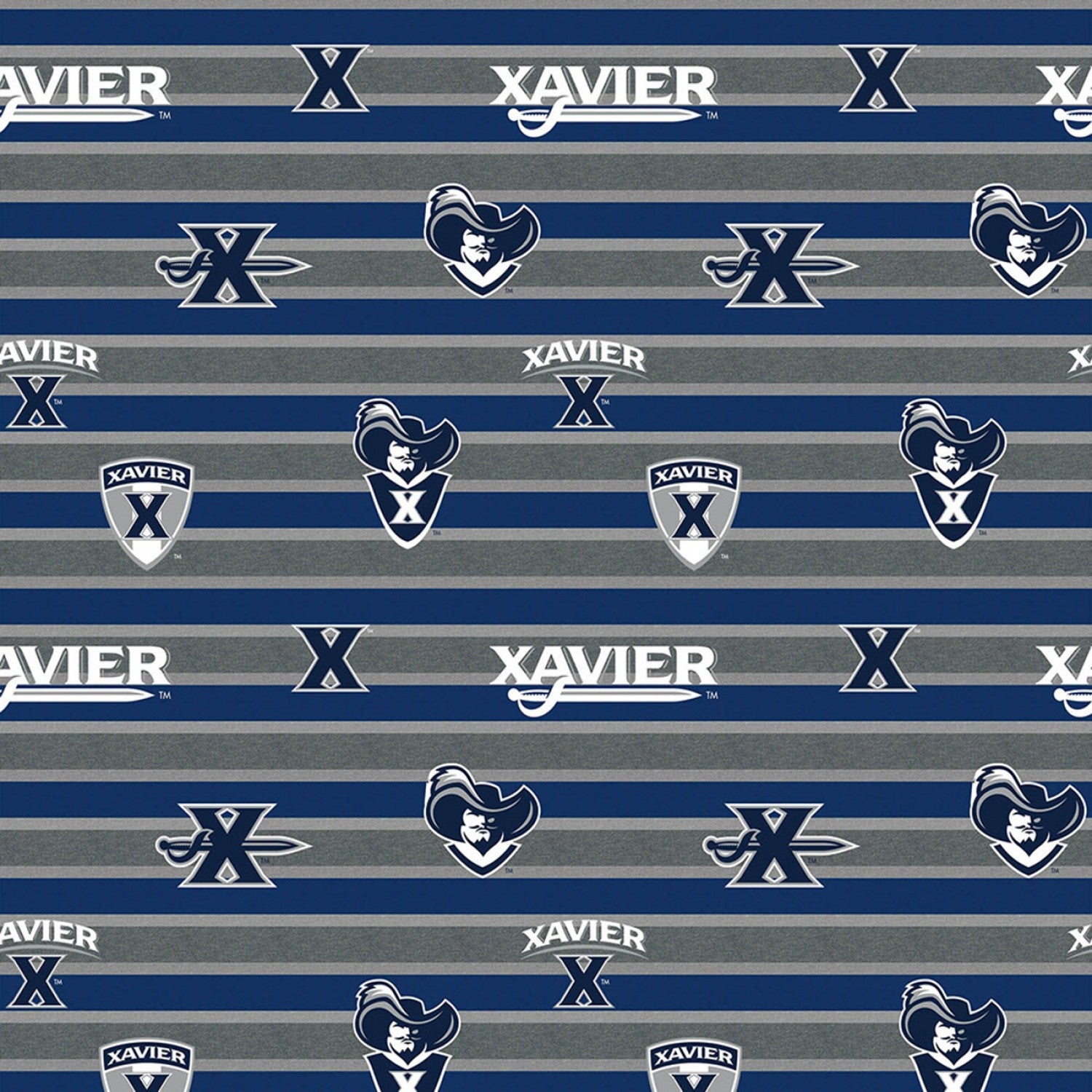 Xavier Musketeers NCAA Polo Stripe Design 43 inches wide 100% Cotton Fabric. Cheer on the Musketeers!